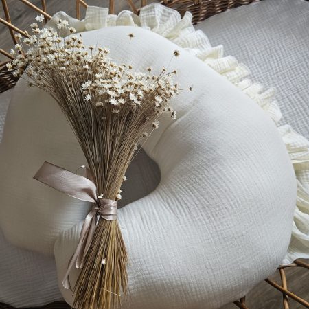 Nasze Rogale do Karmienia to nieoceniona pomoc dla każdej mamy, która pragnie zapewnić sobie i swojemu maluszkowi maksymalny komfort podczas karmienia. Rogale są ręcznie szyte z najwyższej jakości materiałów, takich jak miękka bawełna i delikatny muślin, co gwarantuje ich trwałość i przyjemność użytkowania. Wnętrze wypełnione jest antyalergiczną włókniną silikonową, która doskonale podpiera ciało dziecka, jednocześnie odciążając plecy i ramiona mamy, co sprawia, że karmienie staje się wygodne i relaksujące.